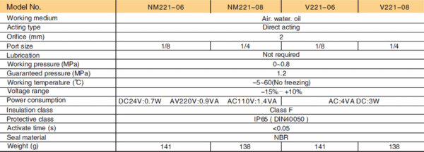 ข้อมูลจำเพาะทางเทคนิค (Technical Specification) ของ EMC – Solenoid Valve Standard/Low Power 2/2 way V Series